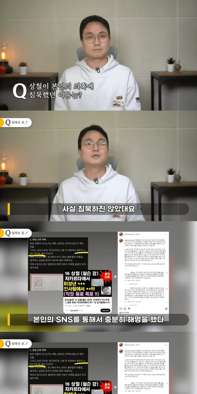 해당 사안에 관련해서 16기 상철님은 꾸준히 해명을 해왔으나 온라인상에선 이를 믿지않았다.