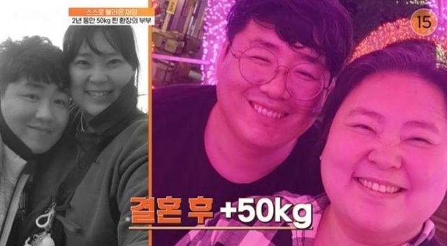 한 부부가 살이 너무 불어나 고민이라며 방송에 나왔다.