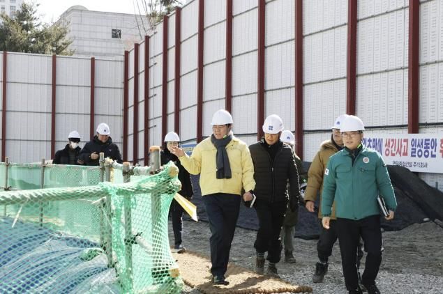 | ▲ 최대호 안양시장이 2월 18일 해빙기 안전점검을 위해 평촌도서관 공사현장을 방문했다. 사진/안양시> |
