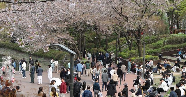 지난해 4월 10일 오후 서울 송파구 석촌호수 벚꽃길을 찾은 시민들 모습. / 뉴스1