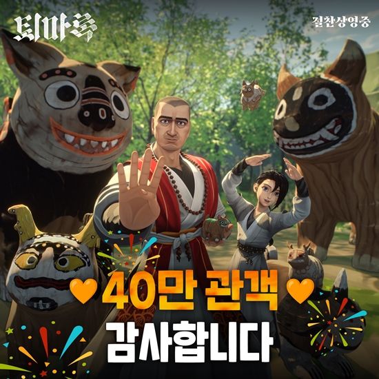 누적 40만 관객을 돌파하며 한국 애니메이션계에 새바람을 일으키고 있는 영화 '퇴마록'은 전국 극장에서 상영 중이다.