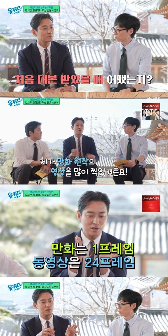 주지훈은 "처음 대본 받았을 때는 제가 만화 원작의 영상을 많이 찍었다. 만화로 보는 것을 영상으로 옮겼을 때 만화니까 가능한데 만화는 한 프레임이고 이걸 스물네 프레임으로 돌리면 동영상이지 않냐. 스물세 프레임을 채워 넣어야 되는데 그런 것들이 되게 힘든 작업이라 그런 것들에 대한 의견이 되게 분분했다"라며 밝혔다.