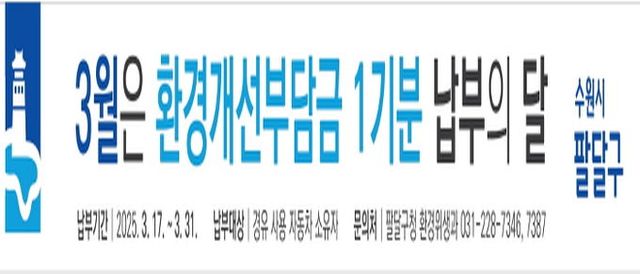 [와이뉴스] 수원시 팔달구는 경유 자동차 2,970대를 대상으로 2025년도 1기분 환경개선부담금 1억 9천만 원을 부과한다.