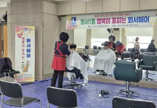 [와이뉴스] 수원시 팔달구 화서1동 행정복지센터는 지난 11일, 대한미용사회 팔달구지회와 협력하여 취약계층 어르신들을 위한 이미용 봉사활동을 실시했다. 이번 봉사활동은 화서1동 행정복지센터에 찾아오는 형태로 진행됐으며, 총 6명의 어르신들이 무료로 머리 손질을 받았다.