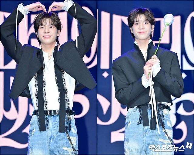 이날 쇼케이스에 참석한 가수 정동원이 포토타임 및 멋진 무대를 선보이고 있다.