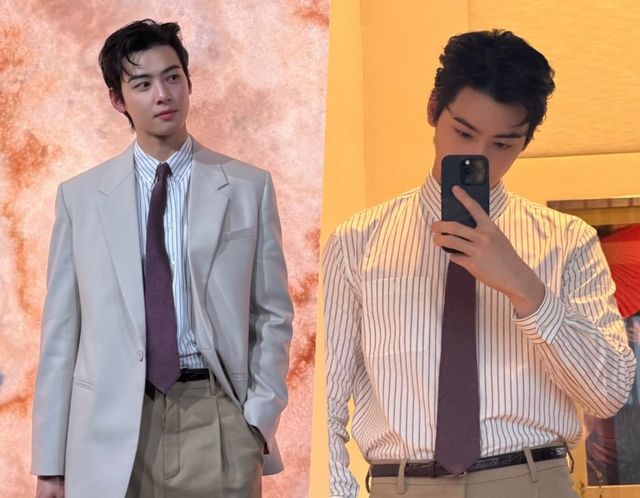 공개된 사진 속 차은우는 베이지톤의 하의에 스트라이프 셔츠, 크림톤의 자켓, 그리고 버건디 톤의 넥타이를 매칭한 캐주얼해보이면서도 남성미가 느껴지는 수트룩을 선보였다. 한층 성숙해진 차은우의 짙은 매력이 더해지며 보는 이들의 시선을 사로잡는다.