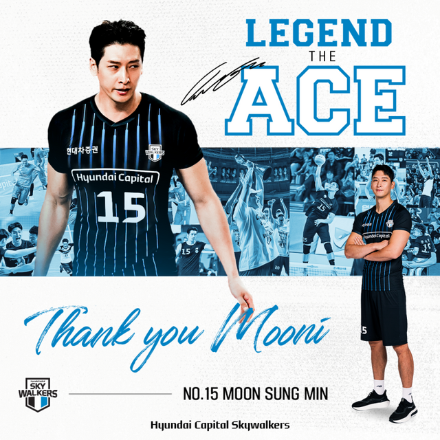 문성민은 V리그 통산 득점 3위(4811점) 후위 공격 3위(1484점) 서브에이스 4위(351개)에 올랐다.