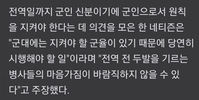 전역일에 머리 잘라야하는 이유가 뭐냐 대체 ㅋㅋ