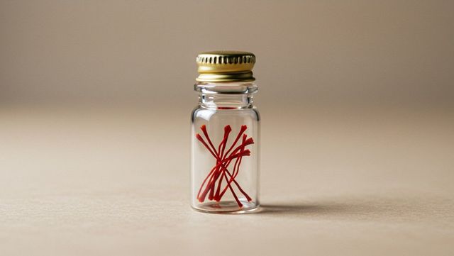 사프란이 유리병에 담겨 있는 모습. / 위키트리