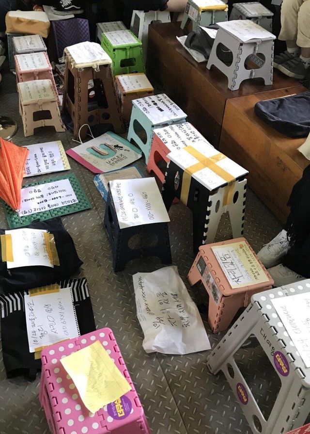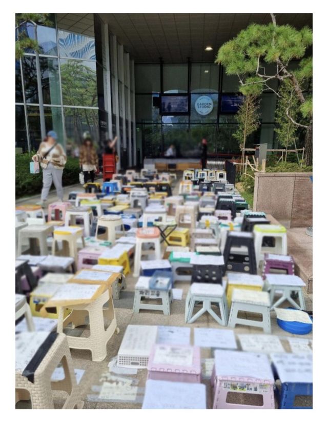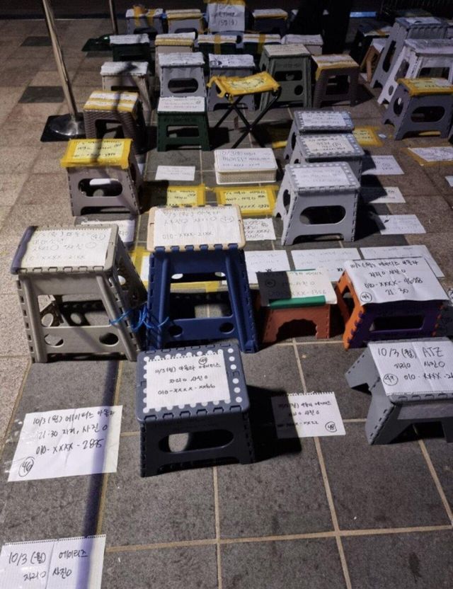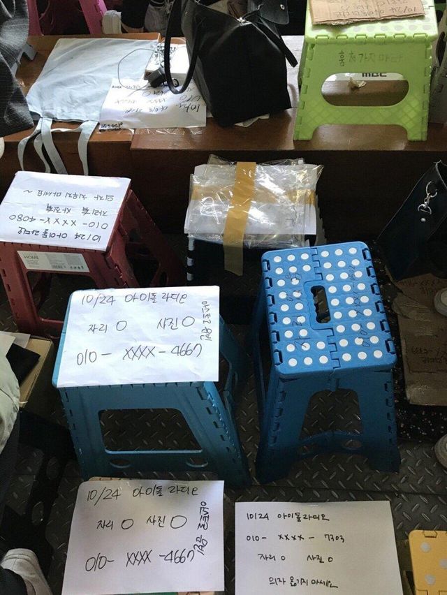 좀 더 좋은 자리 차지해서 연예인들 가까이 보려고 저렇게 해두는데