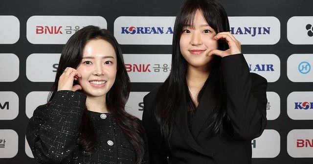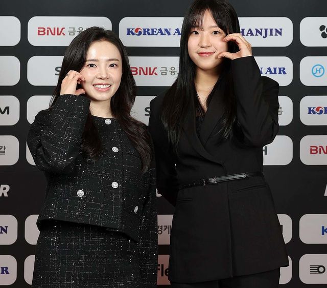 여자 탁구 전지희와 신유빈이 2월 14일 오후 서울 종로구 JW메리어트 동대문 스퀘어 서울호텔에서 열린 '대한탁구협회(KTTA) 어워즈 2025’에 참석해 포즈를 취하고 있다. / 대한탁구협회 제공