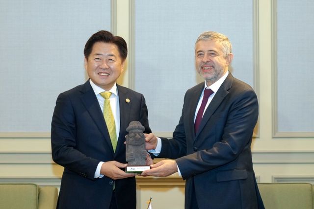 [한라일보] 오영훈 제주특별자치도지사가 13일 게오르기 지노비예프 주한 러시아 대사와 만나 양 지역 간 교류협력 방안을 논의했다.동북아시아지방정부연합(NEAR) 워크숍 참석차 이날 제주를 찾은 지노비예프 대사는 지난 2023년 12월 주한 러시아 연방 특명전권대사로 임명된 아시아 외교 분야 전문가다.