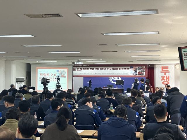 전국금속노동조합 한국GM지부는 13일 오후 인천 한국GM 부평공장에서 ‘트럼프 2.0 자동차 산업 관세 폭탄과 한국지엠에 미칠 영향’ 정책토론회를 개최했다.