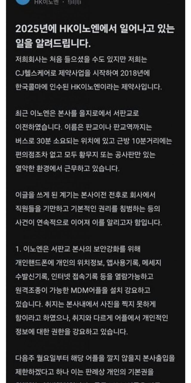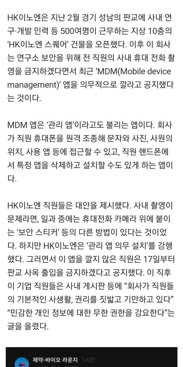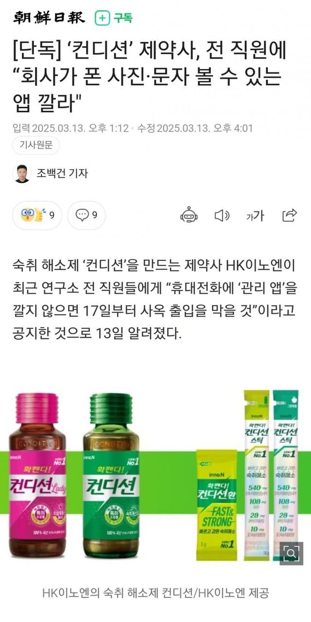 '컨디션' 제약사, 전직원에게 감시 어플 깔라고 지시