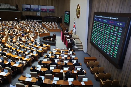 13일 국회 본회의에서 '윤석열 정부의 비상계엄 선포를 통한 내란 혐의 진상규명 국정조사 결과보고서 채택의 건'이 통과되고 있다. 2025.3.13