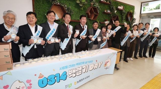 농협청주시지부가 주최하고 청주시가 후원한 이날 행사에서, 이범석 청주시장과 이용선 충북농협 총괄본부장은 출근하는 직원들을 대상으로 청원생명쌀로 만든 백설기 떡을 나눠줬다.
