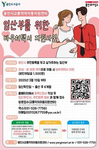 [와이뉴스] 용인도시공사는 15일부터 바우처택시 이용대상을 임산부까지 확대하여 운행하기로 밝혔다.