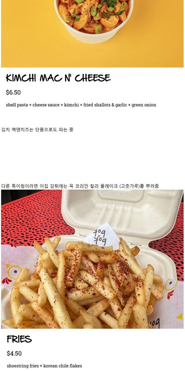 어떤 미국 치킨집에서 파는 김치가 들어간 음식
