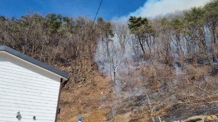 산림·소방 당국 등은 헬기 5대, 장비 19대, 인력 124명을 투입해 이날 오후 5시 45분께 큰불을 잡고 남은 불씨를 끄고 있다.