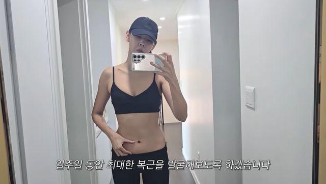 그는 "배꼽이 세로로 길어야 하는데 동그래졌다. 이 배로 란제리 촬영이 가능하지가 않다. 일주일 동안 최대한 복근을 발굴해보도록 하겠다"며 목포를 전했다.