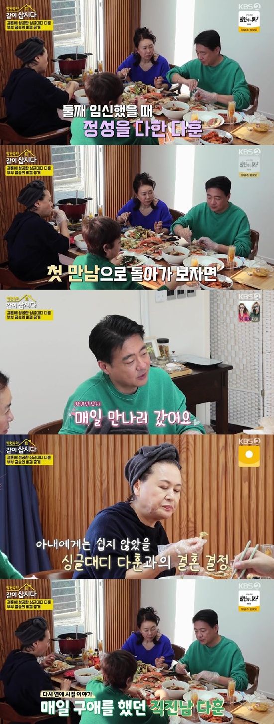 아내가 임신했을 때 잘해줬냐는 질문에 윤다훈은 "정말 잘하려고 노력했다"고 답했고, "처음 만났을 때도 만난 지 3개월 만에 결혼했다. 제가 매일 만나러 갔다"며 첫 만남을 회상했다.