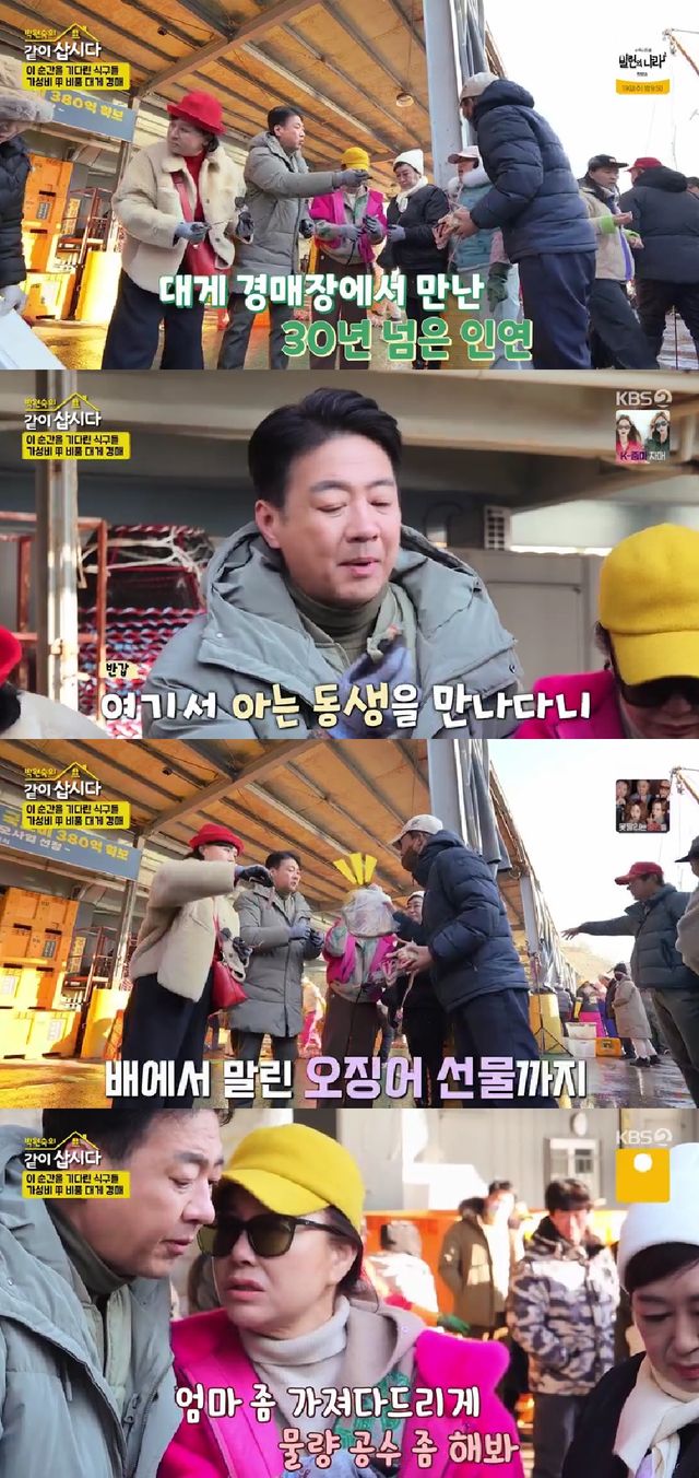 그런가 하면, 김훈은 경매장에서 30년 넘는 인연을 자랑하는 지인을 만나며 인맥왕 면모를 과시했다. 지인은 배에서 말린 오징어를 선물했고, 김청은 "엄마 좀 가져다드리게 물량 공수 좀 해봐"라고 회유했다.