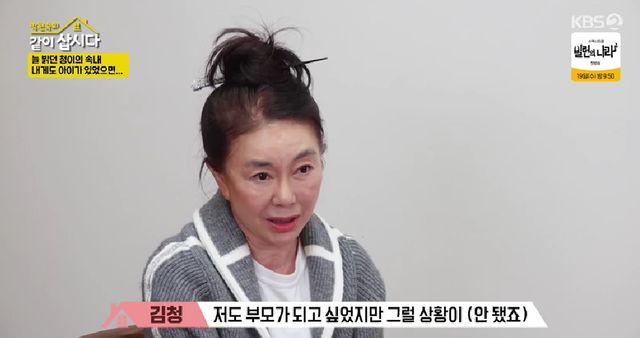 마음의 상처로 한동안 칩거 생활을 했다고 고백한 김청은 "진짜 아팠다. 저도 부모가 되고 싶었지만 그럴 상황이 (안 됐다)"며 "(남들이) 자식 얘기 할 때는 스스로 '나도 자식이 있었으면' 라는 생각이 든다. 저한테는 아픈 스토리"라며 가정에 대한 응어리를 솔직하게 털어놓았다.