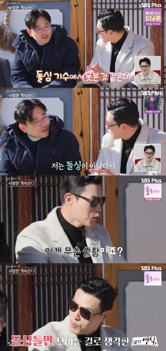 영식은 "제가 ('나는 솔로') 꾸준히 못 봐서 잘 모른다"고 사과하더니 "돌싱이냐. 돌싱 기수에서 못본 거 같은데"라고 물었고, 영수는 "저는 돌싱이 아니다"고 답했다.