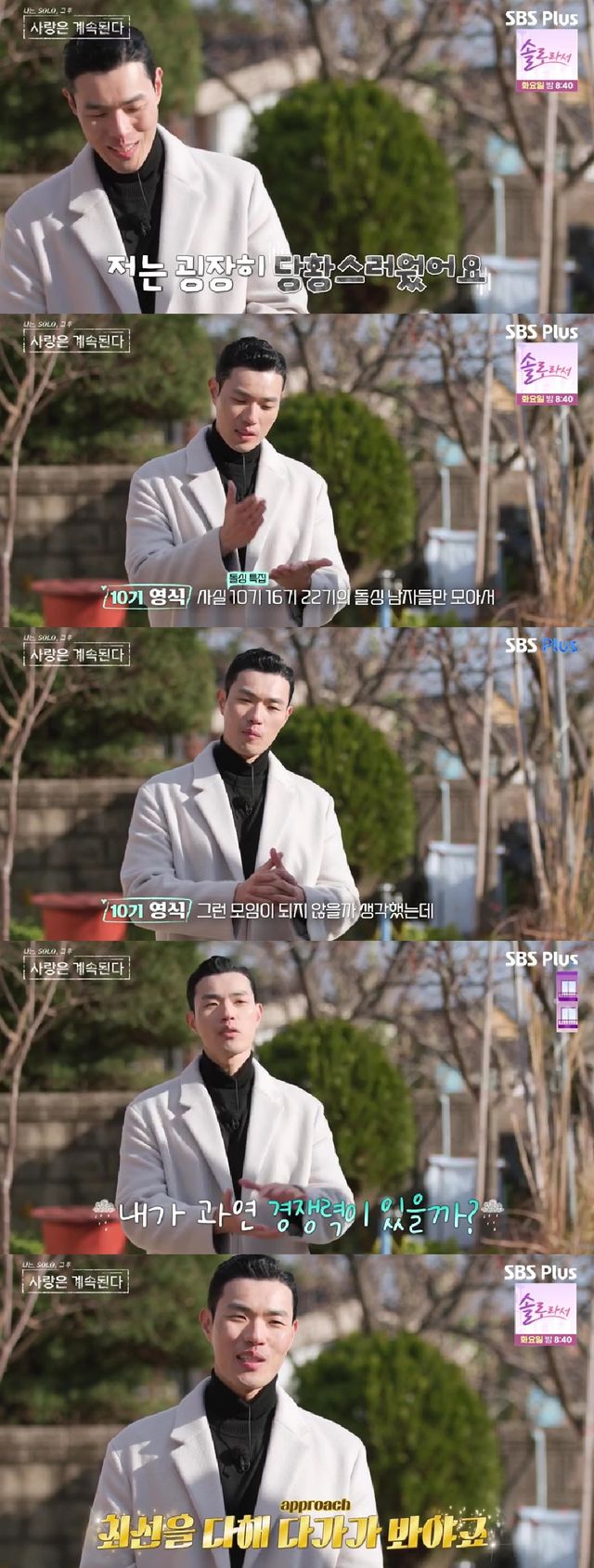 인터뷰에서 그는 "저는 굉장히 당황스러웠다. 사실 10기, 16기, 22기 돌싱 남자들만 모아서 처음 출연하는 (여성)분들과 함께 하는 모음이 되지 않을까 생각했는데 (3기 영수가) 싱글이어서 당황했다"며 "내가 과연 경쟁력이 있을까?"라고 걱정했다.