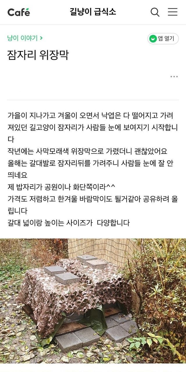 주민들이 급식소 치워버리자 위장술 노하우 공유중