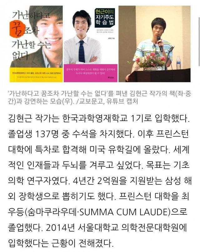 -> 삼성장학생으로 4년간 2억여원 수혜