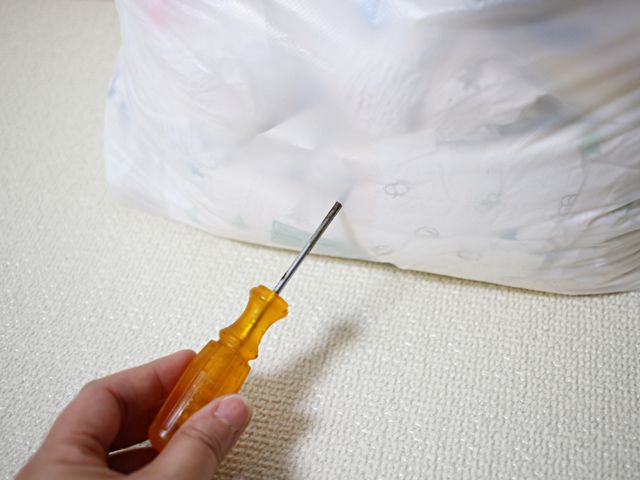 종량제봉투 하단에 송곳으로 구멍을 뚫어주세요.