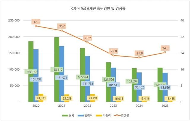 공무원이라는 직종자체의 인기도가 높아진게 아니라사회 전체 취업자리가 좃박아서그나마 열린 공시로 빠지는중