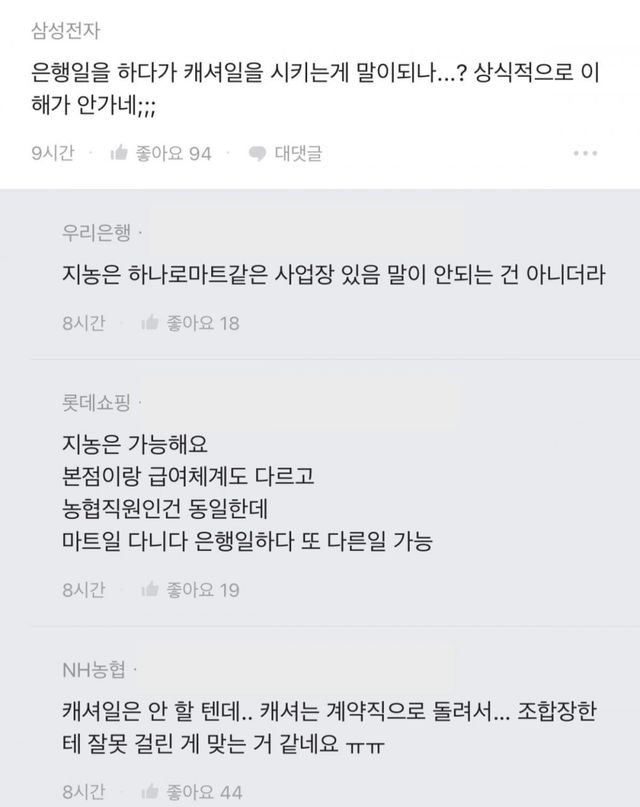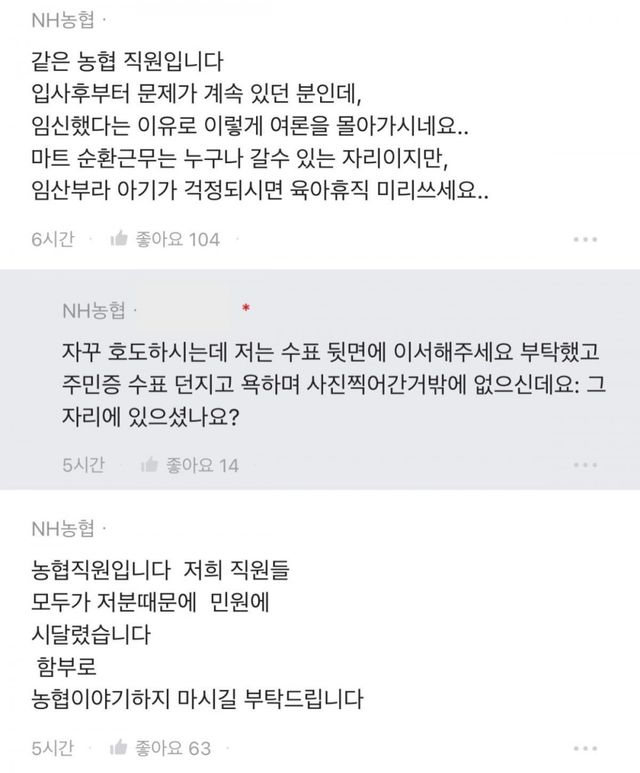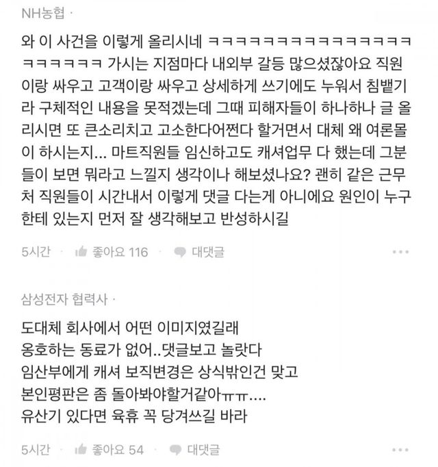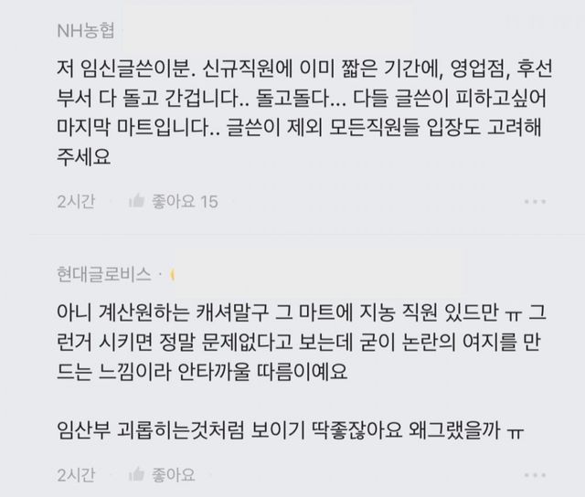 5개월차 임산부인데 은행에서 마트캐셔로 발령남