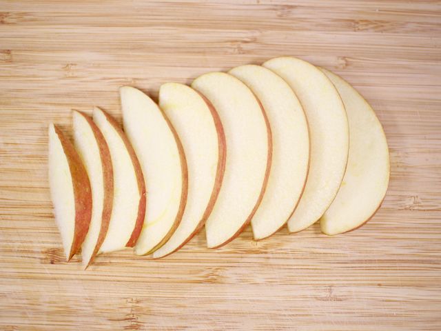 사과는 껍질째 깨끗하게 씻어서 반달모양으로 얇게 썰어주세요.