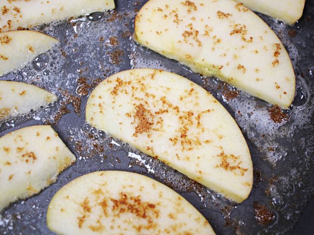 사과가 갈색으로 고르게 익으면 불을 꺼주세요.
