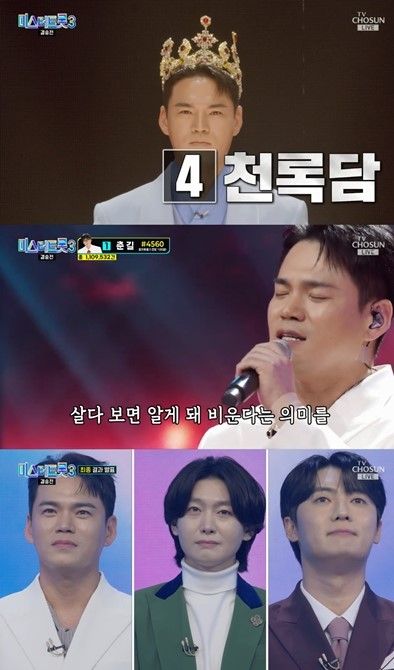 (엑스포츠뉴스 김수아 기자) 가수 천록담 이정이 ‘미스터트롯3’ 미(美)에 등극했다.
