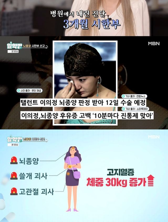 이의정은 "(병원에서) 3개월 밖에 못 산다고 했다"며 시한부 선고를 받기도 했다고 전했다.
