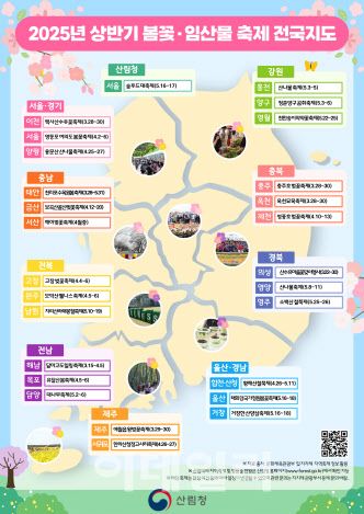 ‘봄꽃·임산물 축제 전국지도’에 대한 자세한 사항은 산림청 누리집에서 확인할 수 있으며, 하반기 축제 정보는 오는 6월 중 공개될 예정이다.