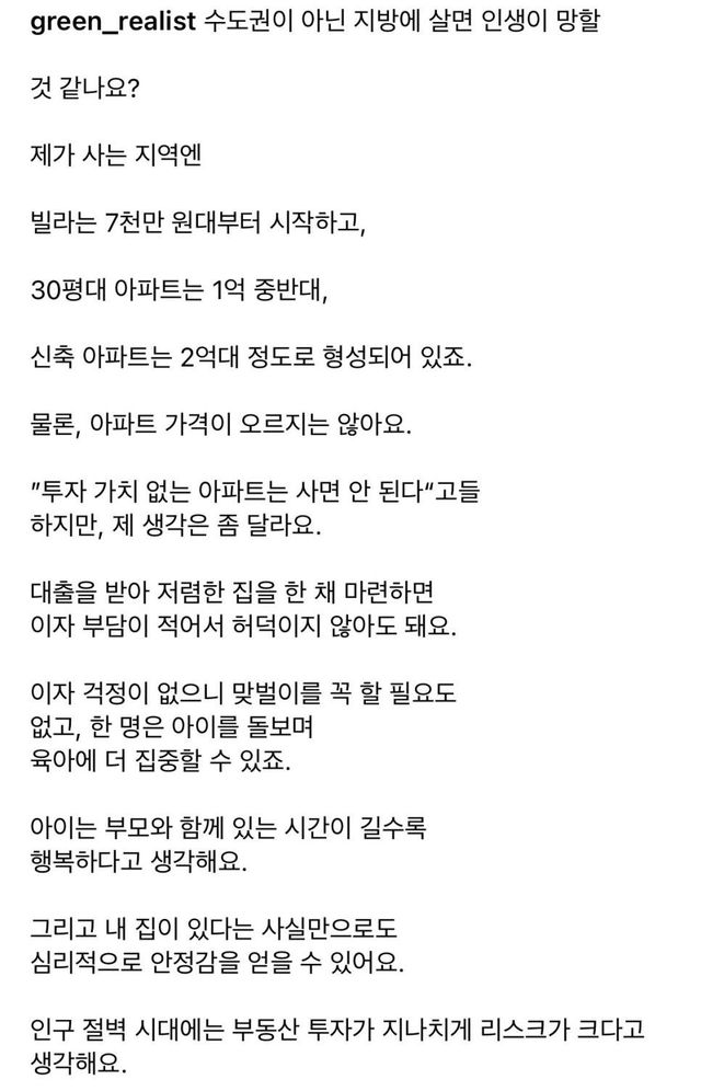 사람 성향에 따라선 충분히 행복하게 살 수도 있는 환경