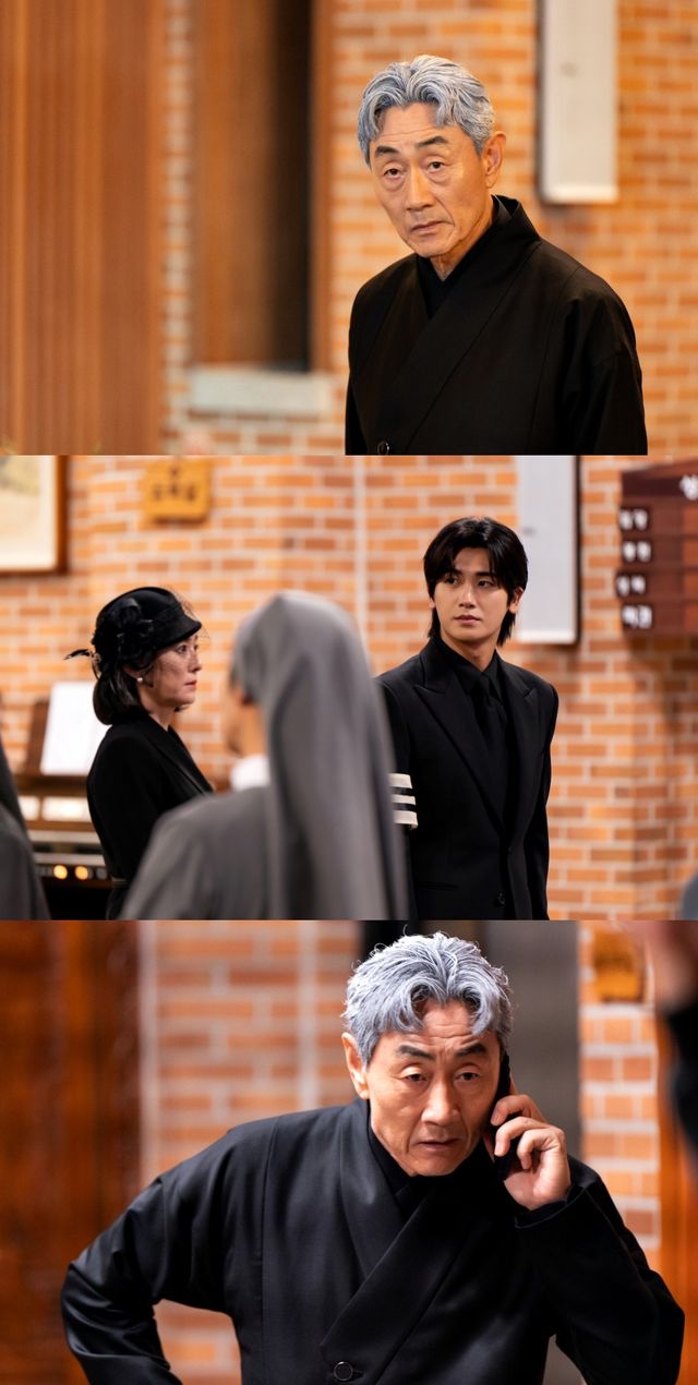 이런 가운데 3월 14일 '보물섬' 제작진이 장례식장에서 마주한 서동주와 염장선의 모습을 공개했다. 사진 속 서동주는 상주로서 장례식 현장을 지키고 있다. 넋이 나간 듯 공허하고 허탈한 서동주의 표정이 안타까움을 자아낸다. 이어 장례식장에 모습을 드러낸 염장선은 여전히 의심 가득한 눈초리로 서동주를 관찰하고 있다. 서동주가 기억을 찾았는지 확인하고 싶은 것으로 보인다.