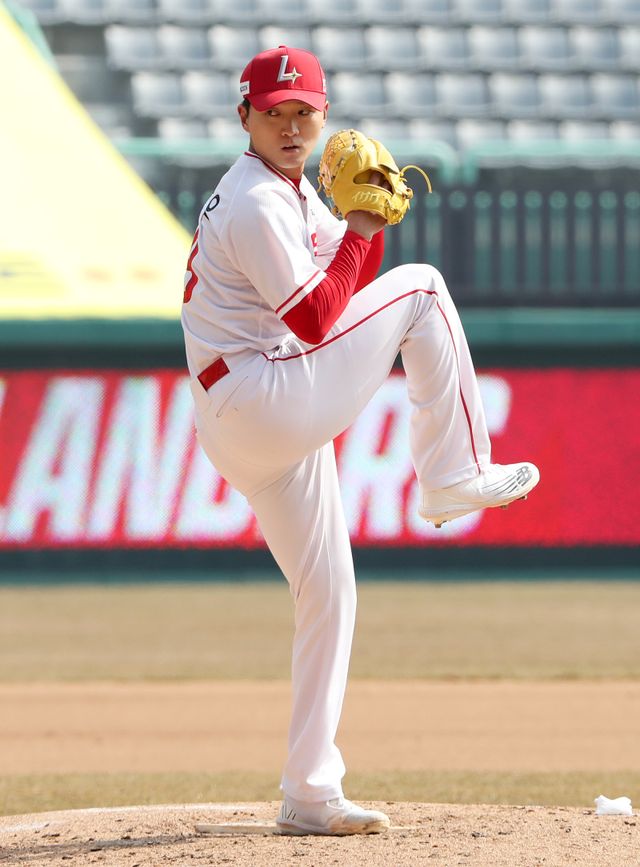 키움전 직구 최고 구속은 한화전과 마찬가지로 147㎞/h였다. 직구(36개) 체인지업(20개) 중심의 투구 레퍼토리에서 커브(3개)와 슬라이더(4개)를 적재적소 섞었다. 제구 잡힌 빠른 공이 포수 미트에 꽂히니 키움 타자들이 공략에 애를 먹을 수밖에 없었다. 무엇보다 사사구가 없다는 게 고무적이다. 그만큼 타자와의 승부를 피하지 않았다.