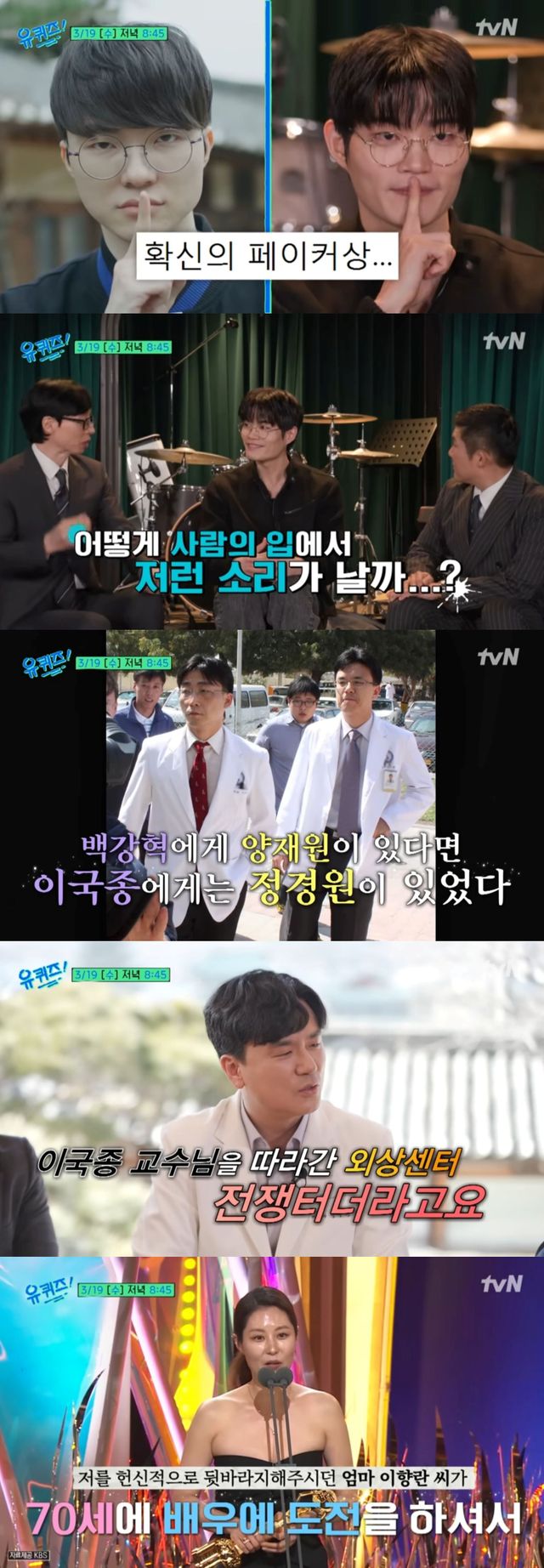 13일 tvN '유 퀴즈 온 더 블럭'(이하 '유퀴즈') 측은 공식 채널에 '모전여전의 열정, 문소리와 배우 이향란, 비트박스 챔피언 윙, 이국종의 1호 제자 정경원 교수!'라는 제목의 예고편을 업로드했다.