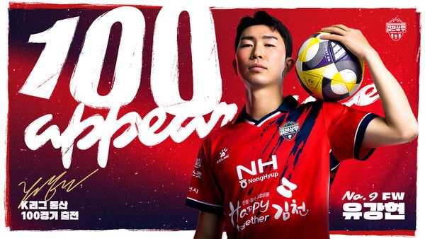 김천상무프로축구단(대표이사 이재하, 국군체육부대장 진규상)의 유강현이 ‘하나은행 K리그1 2025’ 4R에 출전하며 K리그 통산 100경기에 출전했다. 그는 “늘 눈앞에 있는 한 경기 한 경기만 보고 왔는데 어느새 100경기나 출전했다는 사실에 시간이 참 빠르다 싶으면서도 감사한 마음이다.”라고 말했다.