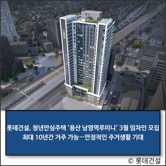 롯데건설이 3월 서울 용산구 갈월동 일대 청년안심주택 '용산 남영역루미니'의 임차인을 모집한다.