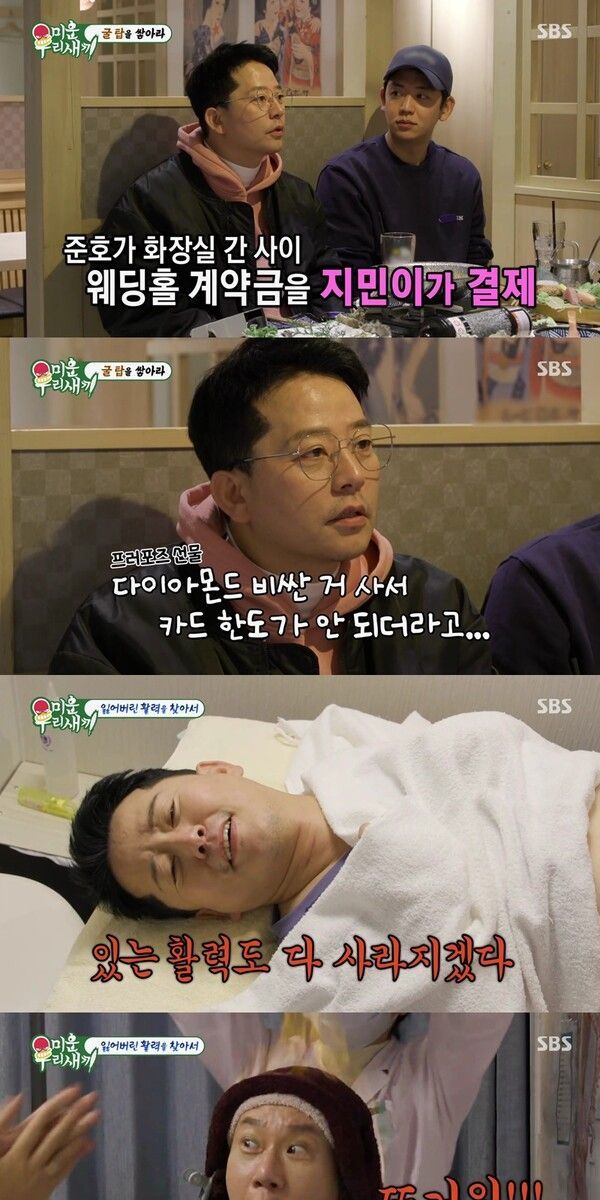 한편 웨딩홀 계약을 하러 갔다 계약금 이야기가 나오는 순간에 화장실을 핑계로 자리를 비워 기사가 났던 김준호는 “다이아 반지 비싼 걸 사서 카드 한도가 안되더라”라며 도망갈 수밖에 없었던 이유를 솔직히 밝혔다.