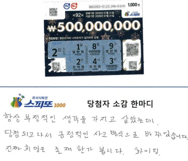 이어 “항상 부정적인 생각을 가지고 살았는데, 당첨되고 나서 긍정적인 사고방식으로 바뀌었다. 진짜 희망은 존재하나 보다”며 “아직도 믿기지 않고, 이 계기를 통해 앞으로 긍정적인 마음으로 살겠다”고 강조했다.