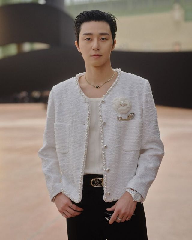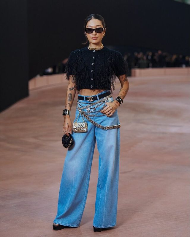 샤넬의 쇼를 직관하기 위해 참석한 배우 박서준과 디제이 페기 구. 박서준은 블랙 앤 화이트로 간결한 룩을 선보였는데요. 화이트 트위드 재킷과 블랙 팬츠를 스타일링하고 골드 포인트 목걸이와, 벨트, 브로치, 반지를 더해 블링블링하게 룩을 마무리했습니다. 페기 구는 샤넬 룩을 힙하게 소화했는데요. 깃털 장식이 매력적인 카디건과 데님 팬츠를 매치하고 여러 개의 체인벨트를 레이어링해 볼드한 스타일로 시선을 사로잡았습니다.
