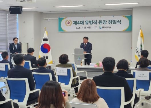 (군포=뉴스영 공경진 기자) 재단법인 군포산업진흥원은 지난 13일 군포시 당정동에 위치한 진흥원 2층 세미나실에서 제4대 유병직 원장의 취임식을 개최했다.
