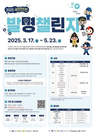 김정균 특허청 산업재산정책국장은 “이번 공모전을 통해 재난, 사건, 사고로부터 국민을 지키는 소중한 현장의 아이디어가 발굴되기를 바란다”면서 “앞으로도 특허청은 지식재산권을 기반으로 국민안전이 확보될 수 있도록 관세청, 경찰청, 소방청, 해양경찰청 등 관계부처와 지속적으로 협업해 나갈 것”이라고 강조했다.